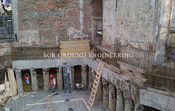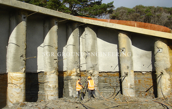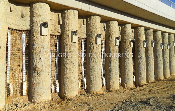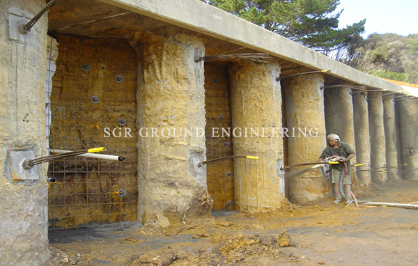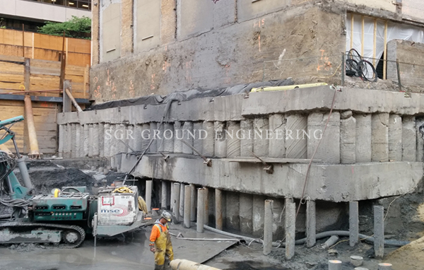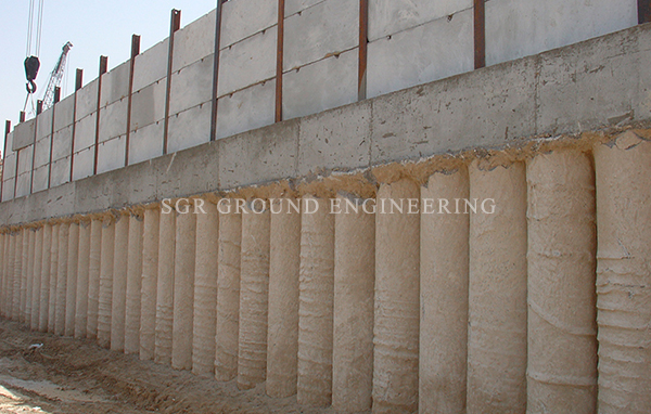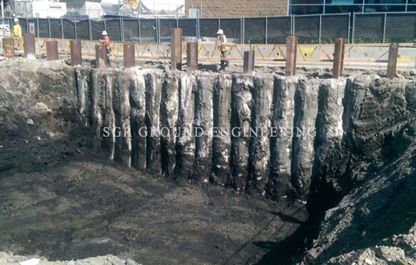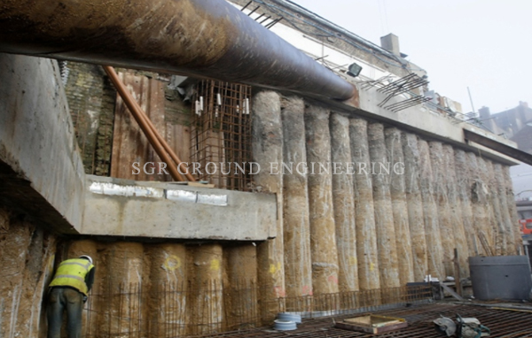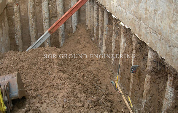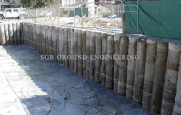 Touch pile Shoring is very versatile because the size of the piles and the spacing between them can be adjusted to site soil conditions.