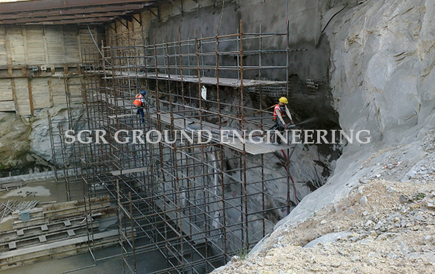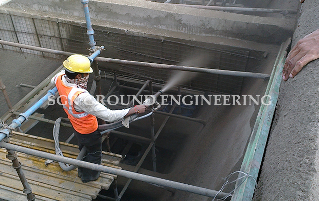 Shotcrete is a method of applying concrete projected at high velocity primarily on to a vertical or overhead surface. The impact created by the application consolidates the concrete. Although the hardened properties of shotcrete are similar to those of conventional cast-in-place concrete, the nature of the placement process results in an excellent bond with most substrates, and rapid or instant capabilities, particularly on complex forms or shapes. The shotcrete process requires less formwork and can be more economical than conventionally placed concrete. Shotcrete is applied using a wet- or dry-mix process. The wet-mix shotcrete process mixes all ingredients, including water, before introduction into the delivery hose. The dry-mix shotcrete process adds water to the mix at the nozzle. Shotcrete is used in new construction and repairs and is suitable for curved and thin elements.